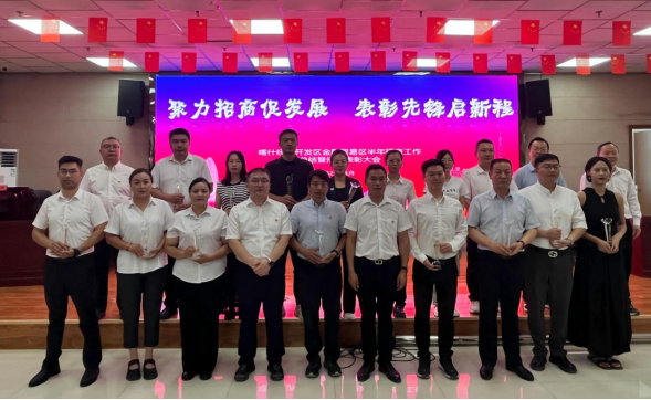 8月28日上午,喀什经济开发区金融贸易区举办2025上半年招商工作总结会暨招商先进集体及个人表彰大会,城东中心全体党员职工及各楼宇大厦负责人、商协会负责人、企业家代表等70余人参加会议。